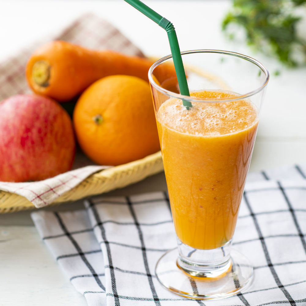 人参・オレンジには抗酸化ビタミンといわれるビタミンAやビタミンCが豊富で、肌の調子を整えてくれます。生姜を入れることで胃腸の調子も整えられます。またさっぱりと飲むことができます。